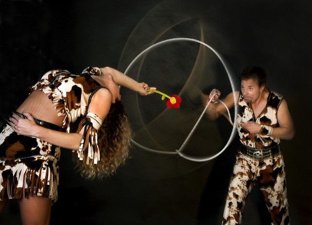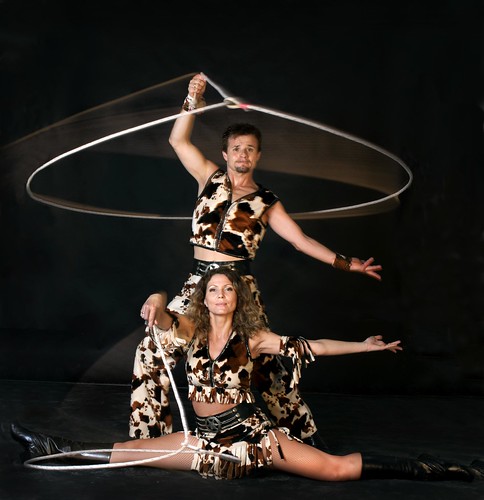 Le couple artistique Milton & Gala vous entraîne dans un univers vibrant où traditions et rythmes enflammés se rencontrent. Ensemble, ils marient l’art du lasso western et l’énergie spectaculaire des bolas argentines, pour offrir deux numéros unique mêlant dextérité, vitesse et précision.