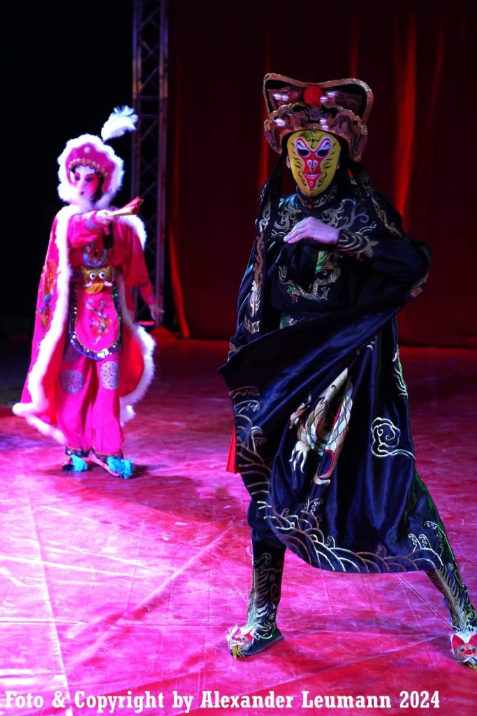Ensemble, ils proposent un spectaculaire numéro de changement de masques chinois, alliant surprise, grâce et originalité.